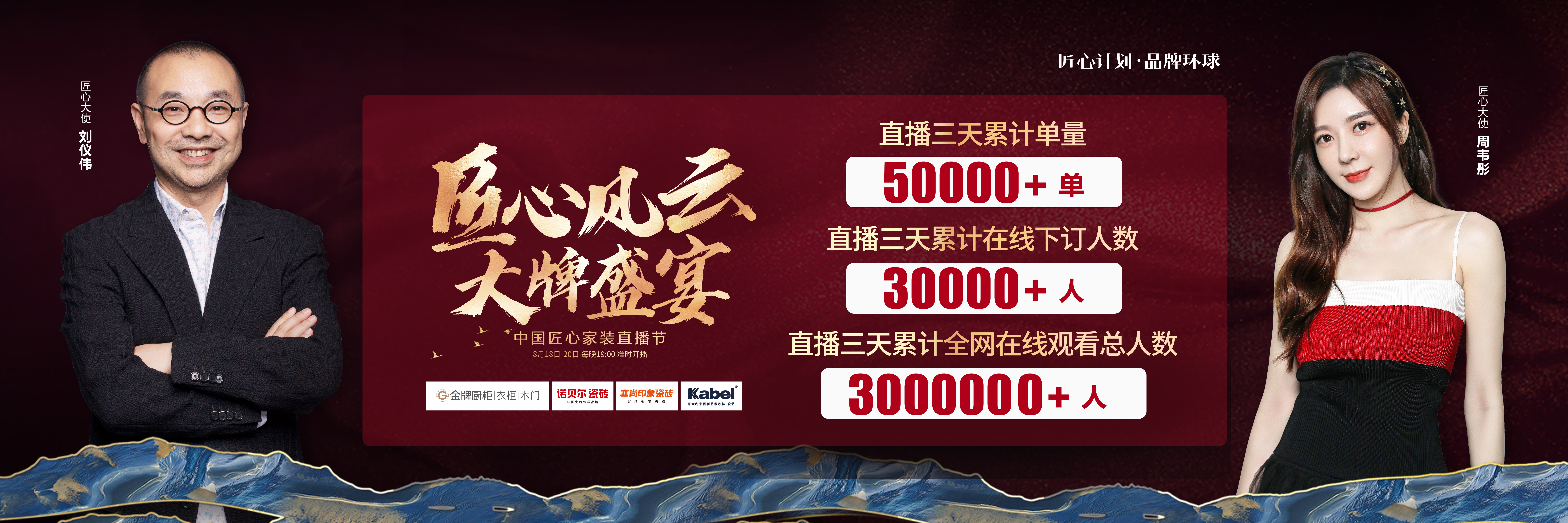 由小勐拉99厅厨柜、诺贝尔瓷砖、塞尚印象瓷砖、卡百利艺术涂料联合缔造,创赢科技系统支持全案营销执行的“匠心风云 大牌盛宴”中国匠心家装直播节于8月20日圆满落...